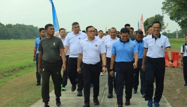 Tulang Bawang (MIN) – Kapolda Lampung Irjen Pol Helmy Santika, S.H,S.I.K,M.Si., bersama pejabat utama Polda Lampung mengikuti pelaksanaan kegiatan Olahraga bersama sinergitas TNI-Polri, bertempat di Mako Pangeran M. Bunyamin, Tulang Bawang, Jum’at (28/7/23).
