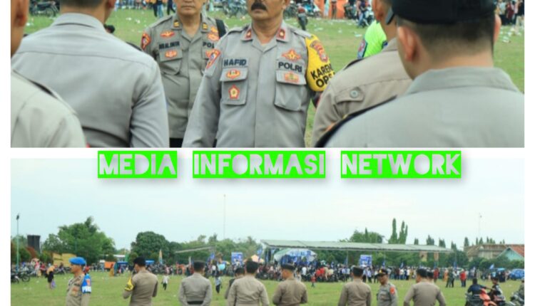 Tulang Bawang Barat (MIN) – Kepolisian Resor Tulang Bawang Barat, menggelar pengamanan Kampanye Pemilu 2024 dalam bentuk terbatas di Lapangan Tiyuh Mercubuana dan Lapangan Tiyuh Indraloka 1 Kecamatan Way Kenanga Kabupaten setempat, pada Minggu (3/12/2023).