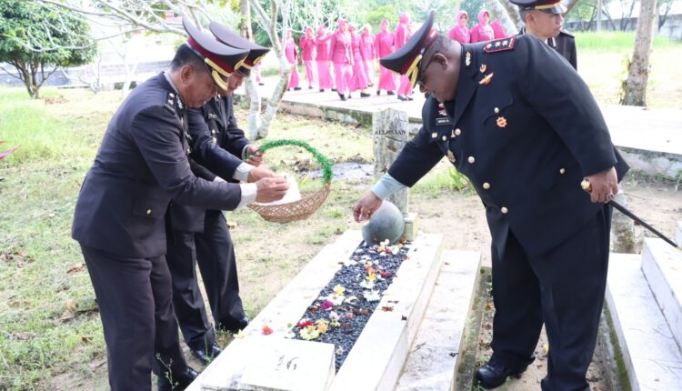 Tulang Bawang (MiN) – Menyambut Hari Bhayangkara Ke-77 tahun 2023, yang acara puncaknya diperingati setiap tanggal 01 Juli, Polres Tulang Bawang, Polda Lampung, menggelar Upacara Ziarah dan Tabur Bunga.