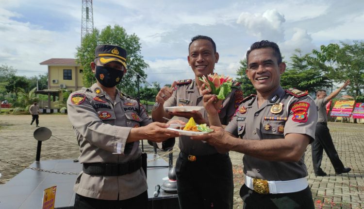 Di akhir upacara juga dilaksanakan penyiraman air bunga dan potong tumpeng, sebagai tradisi yang dimulai oleh Waka Polres diikuti Pejabat Utama Polres Pesawaran. (Koes)