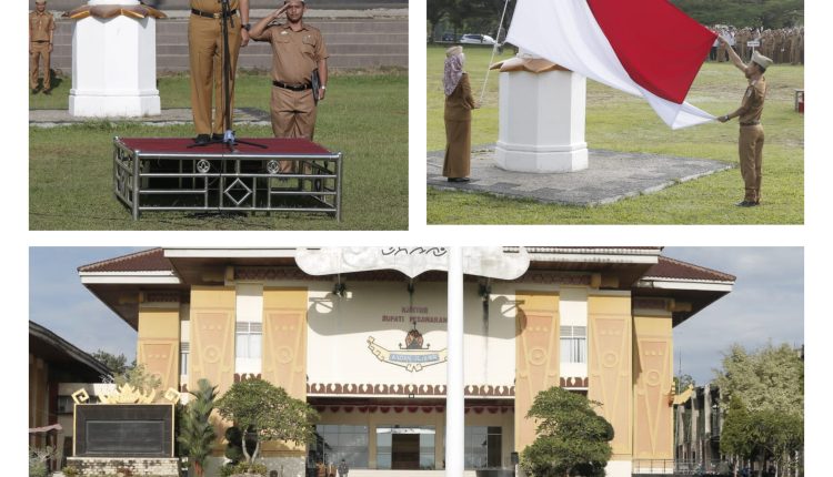 Pesawaran (MiN) – Asisten Bidang Pemerintahan dan Kesra Kabupaten Pesawaran Sunyoto menjadi Pembina dalam upacara bendera Mingguan di Lapangan Pemkab Pesawaran, Senin (20/2/2023).