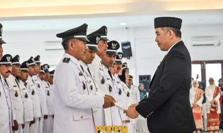 Pesawaran – Bupati Pesawaran Dendi Ramadhona mengukuhkan 139 kepala desa se – Kabupaten Pesawaran di Gedung Serba Guna kabupaten setempat, Rabu (17/07/2024).