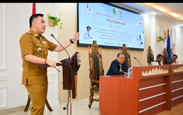 PESAWARAN (MI-NET) – Bupati Kabupaten Pesawaran, Dendi Ramadhona, secara resmi membuka Musyawarah Olahraga Kabupaten (MUSORKAB) Komite Olahraga Nasional Indonesia (KONI) Kabupaten Pesawaran Tahun 2025 di Aula Pemkab Pesawaran, Selasa (19/08/2025).