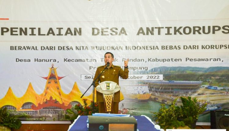 Pesawaran (MIN-SMSI) – Bupati Pesawaran H. Dendi Ramadhona K,ST.M.Tr.I.P menghadiri acara Penilaian Desa Antikorupsi di Kabupaten Pesawaran yang berlangsung di Desa Hanura Kecamatan Teluk Pandan Kabupaten setempat, Selasa (11/10/2022).