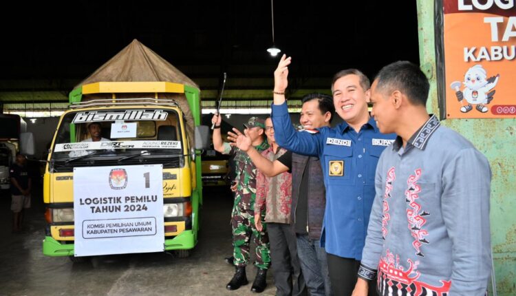 Mi-Net.com – Bupati Pesawaran Dendi Ramadhona melepas Logistik Pemilu Tahun 2024 di Gudang Logistik KPU Kabupaten Pesawaran Desa Taman Sari Kecamatan Gedong Tataan, pada Minggu (11/02/2024).