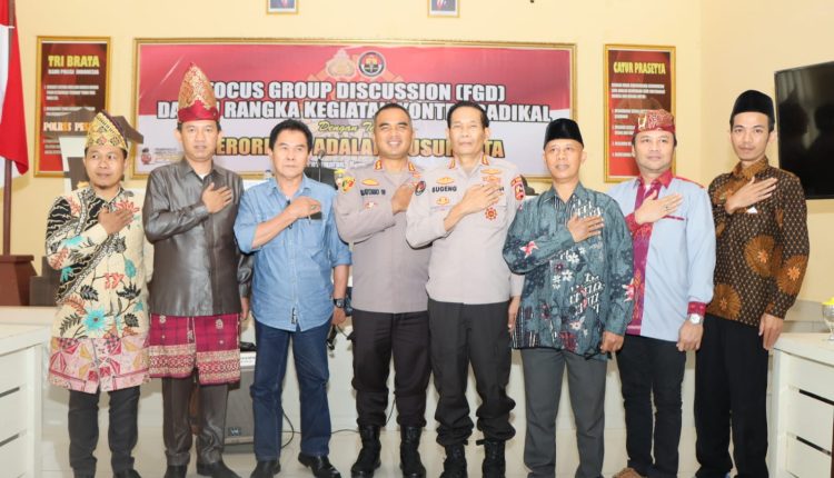 Pesawaran (MIN) – Dalam rangka mencegah Paham Radikal, Polres Pesawaran Polda Lampung menggelar Focus Grup Discussion (FGD) Dengan Tema “Terorisme Adalah Musuh Kita” yang menghadirkan sejumlah tokoh dari masyarakat, Kementrian Agama, Tokoh Adat, tokoh masyarakat, dan Pengurus Harian BPET MUI Pusat Ustad Makmum Rasid,.U.ud.,M.,Ag yang digelar di Aula Sanika Satya Wada, Rabu (16/11/22) siang.