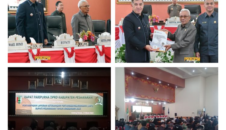 Pesawaran (MiN) – Dewan Perwakilan Rakyat Daerah (DPRD) Kabupaten Pesawaran gelar Rapat Paripurna dalam rangka Penyampaian Laporan Keterangan Pertanggung Jawaban (LKPJ) Bupati Pesawaran Tahun Anggaran 2022, bertempat di Ruang Rapat DPRD setempat, Jumat (31/03/2023).