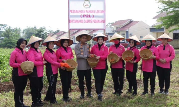 Dukung Program Ketahanan Pangan, Kapolres Pesawaran dan Ketua Bhayangkari Panen Cabai di Mapolres