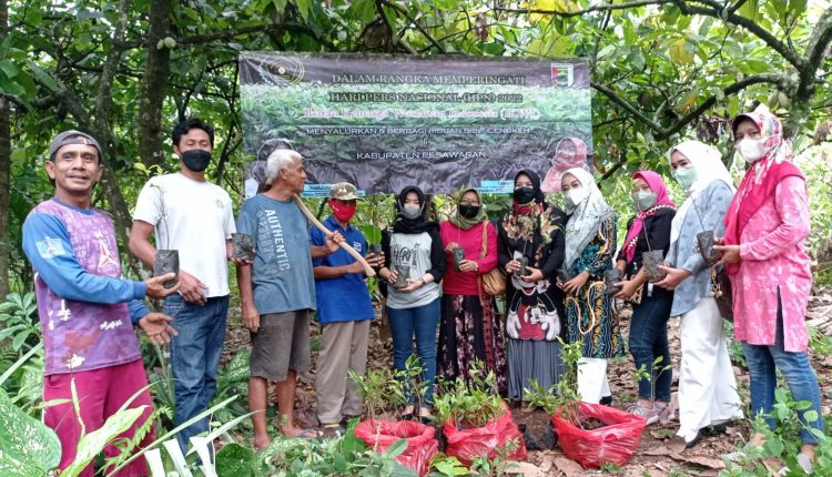 Pesawaran Lampung (MIN-SMSI) – Perayaan Hari Pers Nasional (HPN) 2022, Ikatan Keluarga Wartawan Indonesia -Persatuan Wartawan Indonesia (IKWI-PWI) Kabupaten Pesawaran, Lampung membagikan bibit Cengkeh kepada masyarakat Bumi Andan Jejama, Ahad (13/02/2022).
