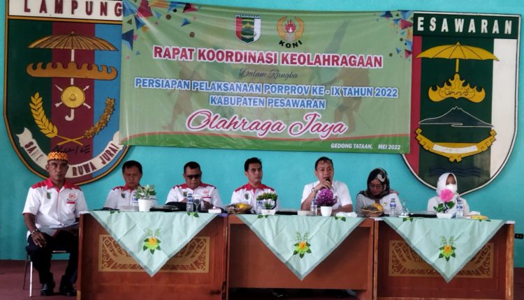Pesawaran (MIN-SMSI) – Komite Olah Raga Nasional Indonesia (KONI) Kabupaten Pesawaran menggelar Rapat Koordinasi Keolahragaan persiapan pelaksanaan Pekan Olahraga Provinsi (Porprov) Lampung ke-IX 2022.