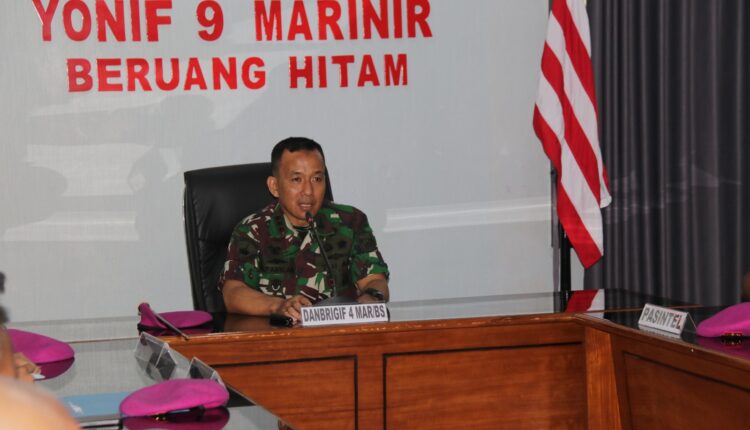 MEDIA INFORMASI NETWORK.COM – TNI-AL, Korps Marinir, Brigif 4 Mar/BS (Pesawaran). Pengarahan Komandan Brigade Infanteri (Danbrigif) 4 Mar/BS Kolonel Mar Supriadi Tarigan S.Ip., M.M kepada Seluruh Perwira Brigif 4 Mar/BS secara tatap muka dan Vicon yang dilaksanakan di Ruang Rapat Yonif 9 Marinir, Desa. Batu Menyan, Kec. Teluk Pandan, Kab. Pesawaran-Lampung, Kamis (14/03/2024).