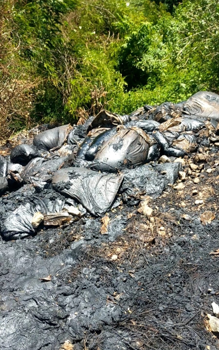 Berdasarkan pantauan ada sekitar dua titik lokasi pembuangan limbah kimia tersebut, dengan ratusan karung berisi limbah yang diperkirakan lebih dari 2 ton.