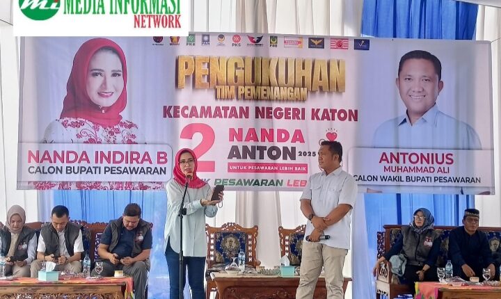 Sementara itu, Calon Bupati Pesawaran Nanda Indira mengajak seluruh tim pemenangan untuk bekerja maksimal dengan mengajak seluruh lapisan masyarakat di Kecamatan Negerikaton untuk memenangkan paslon Nanda – Anton.