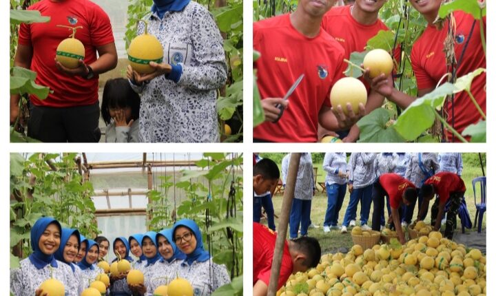 Usai sambutan, kegiatan dilanjutkan dengan memetik buah melon secara langsung dari tanaman yang telah dibudidayakan.