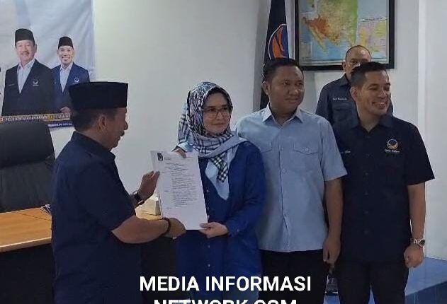 PESAWARAN – Pasangan Bakal Calon Bupati Pesawaran dan Wakil Bupati Pesawaran, Nanda Indira -Antonius Muhammad Ali, resmi menerima Formulir Persetujuan Parpol B1-KWK Partai Nasdem.