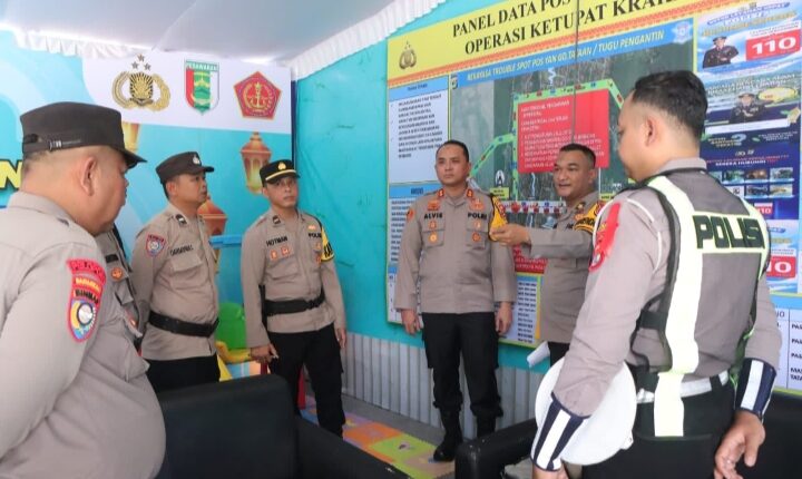 PESAWARAN (MI-NET) – Kapolres Pesawaran, AKBP Alvie Granito Panditha, S.I.K., M.S.S., melaksanakan pengecekan langsung kesiapan Pos Pelayanan (Pos Yan) Tugu Pengantin dan Pos Pengamanan (Pos Pam) Tugu Coklat, Jumat (13/03/2026).