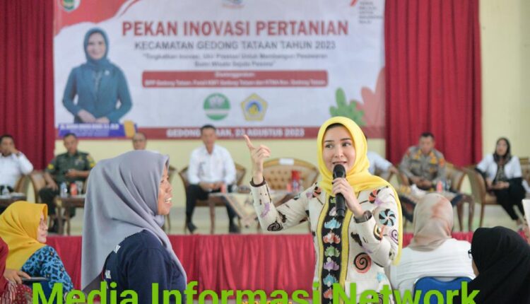 Demikian disampaikan Penasehat Kelompok Tani Wanita (KWT) Kabupaten Pesawaran yang juga Ketua TP-PKK Kabupaten Pesawaran Hj. Nanda Indira Dendi pada kegiatan Pekan Inovasi Pertanian oleh FORSIL KWT dan KTNA se-Kecamatan Gedong Tataan di Islamic Center Pesawaran, Lampung, Rabu (23/08/2023).