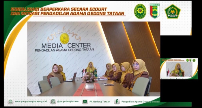 Pesawaran (MI-NET) – Dalam rangka memberikan pemahaman layanan berperkara hukum kepada masyarakat dan para pemangku kepentingan, Pengadilan Agama (PA) Gedong Tataan menggelar Sosialisasi E-Court dan Inovasi layanan berperkara.