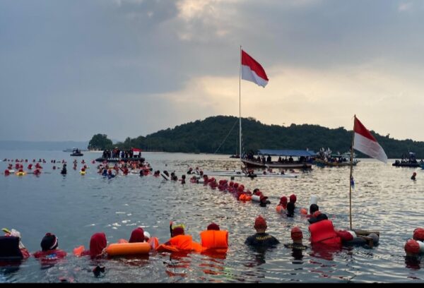 Pesawaran (MI-NET) – Sebuah momen bersejarah tercipta di perairan Pantai Mutun, Kecamatan Padang Cermin, Kabupaten Pesawaran. Sebanyak 565 perenang berhasil memecahkan rekor Museum Rekor Dunia Indonesia (MURI) lewat kegiatan Upacara Bendera Merah Putih di Permukaan Laut oleh Perenang Terbanyak pada Sabtu, (16/8/2025).