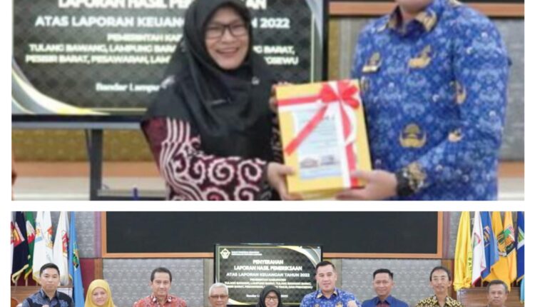 Diketahui, penghargaan bergengsi tersebut diberikan oleh Kepala Badan Pemeriksa Keuangan (BPK) RI Perwakilan Provinsi Lampung, Yusnadewi kepada Bupati Pesawaran atas Laporan Keuangan Pemerintah Daerah (LKPD) Kabupaten Pesawaran Tahun Anggaran (TA) 2022 di Kantornya yang bertempat di Bandar Lampung. (Sur).