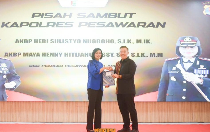 Pesawaran (MI-NET) — Pemerintah Kabupaten Pesawaran menggelar acara pisah sambut Kepala Kepolisian Resor (Kapolres) Pesawaran dari AKBP Maya Henny Hitijahubessy, S.H., S.I.K., M.M., kepada Kapolres baru AKBP Heri Sulistyo Nugroho, S.I.K., M.I.K.,. Acara pisah sambut digelar di GSG Pemkab Pesawaran pada Senin malam, (21/4/2025).