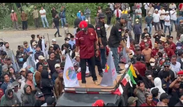 ” Tadi situasi sempat memanas karena aksi dorong mendorong yang tak terelakkan, namun dengan melihat kondisi yang demikian, Bu Kapolres gerak cepat untuk mendinginkan suasana dengan mempersilahkan sepuluh orang perwakilan masuk ke dalam kantor untuk menyampaikan aspirasinya, ” imbuhnya.