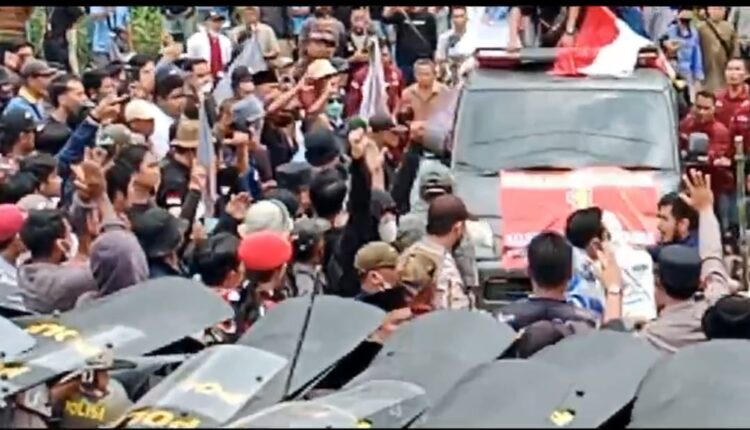 Meskipun sempat terjadi aksi dorong mendorong antara pengunjuk rasa dan aparat pengamanan, namun situasi tetap aman terkendali.