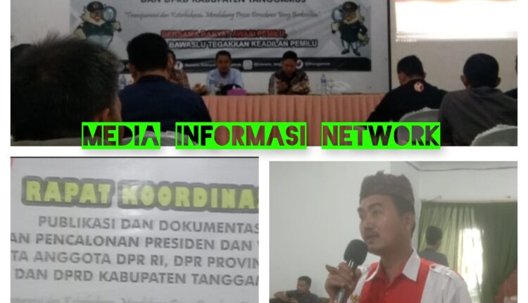 Tanggamus (MIN) – Badan Pengawas Pemilu (Bawaslu) Kabupaten Tanggamus menggelar Rapat Koordinasi (Rakor) Tentang Publikasi dan Dokumentasi Pengawasan Pencalonan Presiden dan Wakil Presiden, serta anggota DPR RI, DPR Provinsi, DPD dan DPRD Kabupaten Tanggamus Periode 2024-2029, bertempat di Hotel Gisting Kecamatan Gisting Kabupaten setempat, pada Sabtu (02/12/2023).