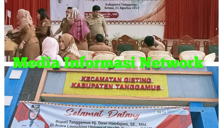 Tanggamus (MIN) – Bupati Tanggamus Hj. Dewi Handajani membuka kegiatan Launching Universal Health Coverage (UHC) Program Jaminan Kesehatan Nasional sekaligus penyerahan piagam penghargaan UHC kepesertaan JKN-KIS oleh BPJS Kesehatan yang di gelar di Gedung Serba Guna (GSG) Pekon Gisting Bawah Kecamatan Gisting Kabupaten Tanggamus, Selasa (22/08/2023).