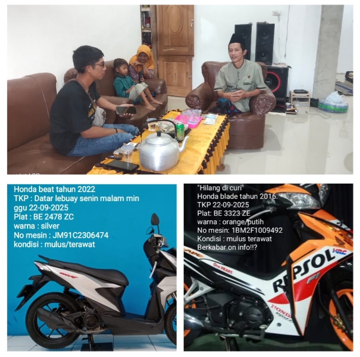 TANGGAMUS (MI-NET) – Aksi pencurian kendaraan bermotor kembali terjadi. Kali ini, dua unit sepeda motor jenis Honda Blade dan Honda Beat, milik Santoso (44), raib digondol maling pada Minggu malam hingga Senin dini hari, (22/9/2025).