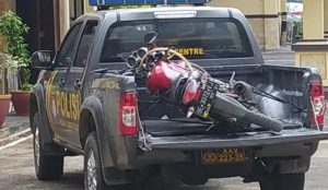 Saat diamankan, tidak jauh dari pelaku didapatkan kendaraan sepeda motor Yamaha Vixion bernopol BE 3072 VJ (Nopol Palsu) yang dipakai olehnya bersama temannya yang melarikan diri setelah itu pelaku tersebut diamankan di Polsek Talang Padang.Â