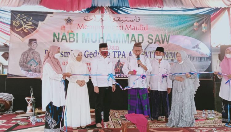 Tanggamus (MediaInformasiNetwork.com) – Wakil Bupati Tanggamus Hi. AM. Syafi’i, menghadiri peringatan Maulid Nabi Muhammad SAW 1443 Hijriah, sekaligus menyaksikan Peresmian Gedung Tempat Pendidikan Alquran (TPA) Al Fathonah, di Pekon Margodadi Utara, Kecamatan Sumberejo, Rabu (3/11/2021).