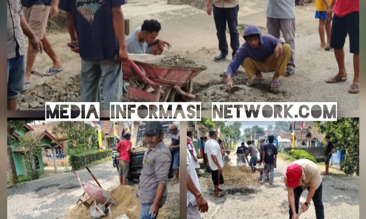 Tanggamus – warga Dusun 4 Pekon campang Kecamatan gisting mengadakan kegiatan bergotong-royong membenahi /merapihkan jalan Raya gunung batu untuk menutupi jalan yang berlubang dengan adukan semen Selasa 6 Agustus 2024.