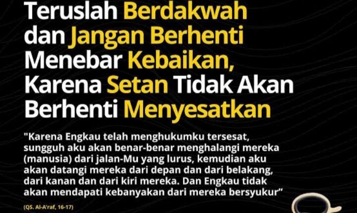 Berdakwah jangan disamakan dengan berpartai. Bukan layaknya berorganisasi seperti umumnya. Jangan dianggap serupa dengan berbisnis. Berdakwah adalah berdakwah. Berdakwah adalah ibadah. Berdakwah akan terus diuji, niatnya semata-mata berharap ridha Allah Ta’ala ataukah ada niat lain yang tersembunyi?