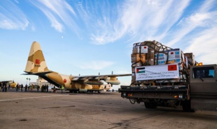 El Arich (Egypt) – Two Moroccan military aircraft carrying emergency humanitarian aid for Palestinian populations arrived, on Wednesday morning (25/10/2023), at El Arich airport (Eastern Egypt). This humanitarian initiative comes in accordance with the High Instructions of HM King Mohammed VI, Chairman of the Al-Quds Committee, aimed at delivering emergency humanitarian aid to the Palestinians.