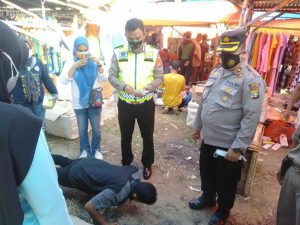 Bagi pedagang dan pengunjung yang tidak memakai masker kami berikan teguran berupa sangsi sosial dan himbauan agar mematuhi prokes (protokol kesehatan).