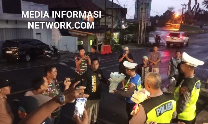 Dukungan diberikan secara simbolis dengan memberikan Buket Bunga Kepada Polisi lalu lintas yang berjaga di Pos Polisi Simpang Empat Negeri Baru Kecamatan Umpu Semenguk Way Kanan Lampung.
