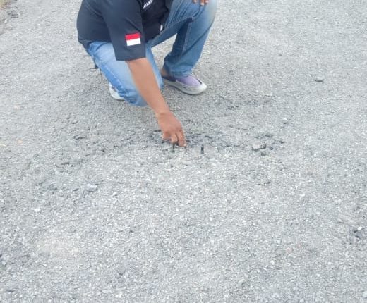 Jalan lapen yang panjangnya kurang lebih panjangnya 175 meter tersebut hanya menghabiskan tiga drum aspal curah, serta hanya ada batu split ukuran 3-5 dan abu batu saja, kemudian tidak ada batu ukuran 1-1 dan 2-3.