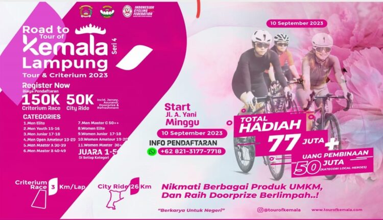 Bandar Lampung (MIN) – Event balap sepeda Tour of Kemala Lampung 2023 akan digelar pekan ini di Bandar Lampung yang akan diikuti oleh para ratusan atlet.
