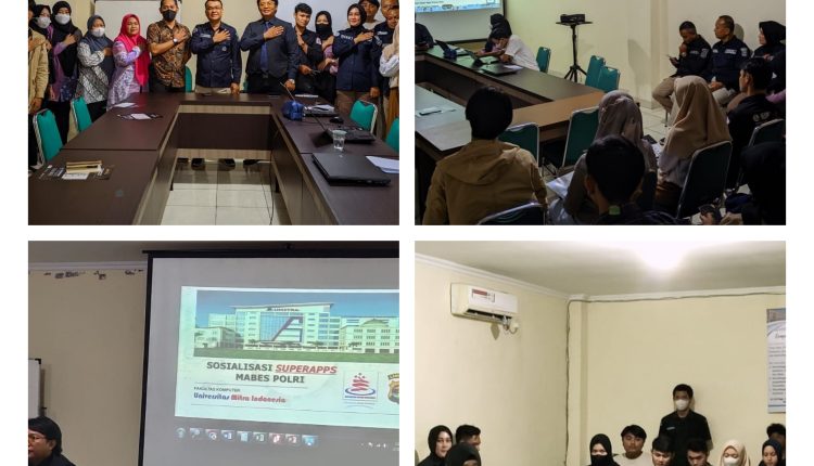 Bandar Lampung (MiN) – Kepala Sub Bidang Penerangan Masyarakat (Kasubbid Penmas) Bidhumas Polda Lampung, AKBP Rahmad Hidayat didampingi Tim Sosialisasi Super App Bidhumas Polda Lampung, melaksanakan kegiatan sosialisasi tentang penggunaan Aplikasi Super App. Sosialisasi itu dilaksanakan bertempat di Universitas Mitra Indonesia (UMITRA), Kamis (16/2/23).