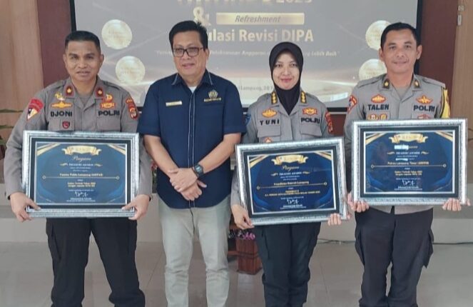 Lampung (MIN) – Pada hari Rabu tanggal 28 Februari 2024 di Aula Semergow Kanwil DJPb Provinsi Lampung, Pelayanan Markas (Yanma) Polda Lampung kembali mendapatkan penghargaan dari Kantor Wilayah Ditjen Perbendaharaan (Kanwil DJPb) Provinsi Lampung kategori Satker terbaik Tahun 2023 dengan capaian IKPA 100.