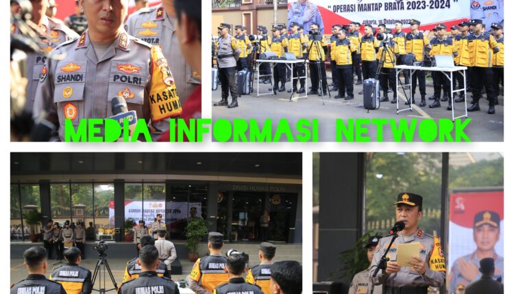Jakarta (MIN) – Kadiv Humas Polri Irjen. Pol. Sandi Nugroho memimpin apel gelar pasukan kesiapan Satgas Humas Ops Mantap Brata 2023. Operasi tersebut digelar dalam rangka pengamanan Pemilu 2024.