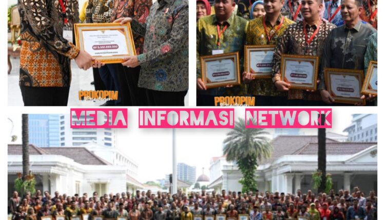 Jakarta (MIN) – Bupati Pesawaran Dendi Ramadhona menerima Penghargaan Insentif Fiskal Kategori Kemiskinan Ekstrem Tahun 2023 pada Rapat Koordinasi Nasional dan Penyerahan Insentif Fiskal Kategori Kinerja Penghapusan Kemiskinan Ekstrem Tahun Berjalan 2023 di Istana Wakil Presiden Jakarta, Kamis (9/11/2023).