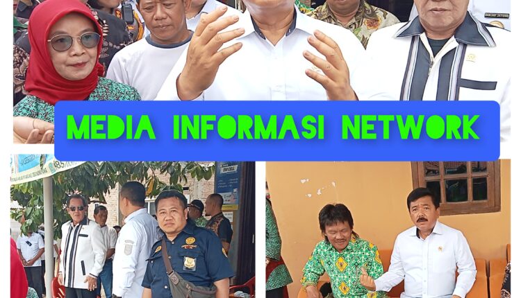 Pesawaran (MIN) – Menteri Agraria dan Tata Ruang/Kepala Badan Pertanahan Nasional (ATR/BPN) Hadi Tjahjanto didampingi Bupati Pesawaran Dendi Ramadhona menyerahkan sertifikat hak milik kepada masyarakat di Kabupaten Pesawaran, Lampung, Kamis (26/10/2023).