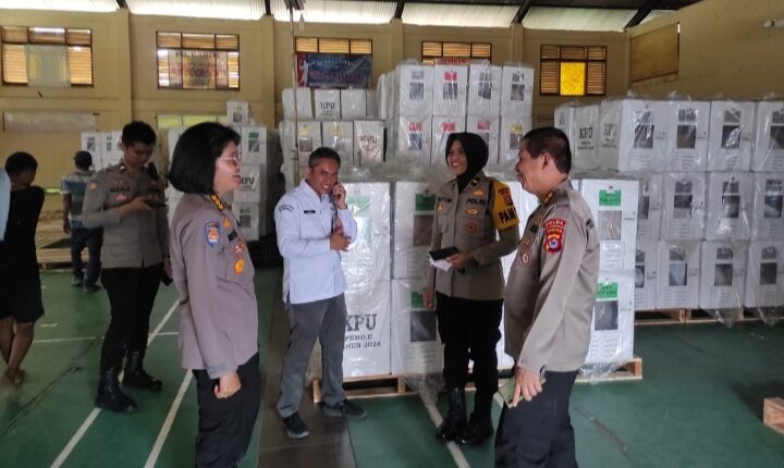 Mi-Net.com – Kabidkeu Polda Banten Kombes Pol Retno selaku Pamatwil Kota Serang laksanakan pengecekan Gudang Logistik Pemilu 2024 PPK Kecamatan Cipocok Jaya, Kota Serang, pada Senin (12/02/2024).
