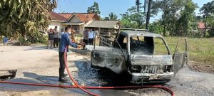 Diduga Angkut BBM Ilegal Mobil Pick -Up BE 9995 DP Terbakar Di Desa Rulung RayaÂ