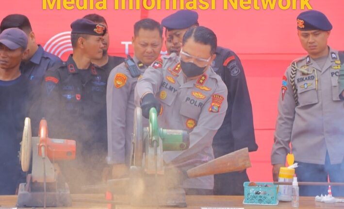 Lampung Selatan (MIN) – Kapolda Lampung Irjen Pol Helmy Santika memusnahkan senpi rakitan beserta amunisinya pada perayaan Hari Jadi Team Khusus Anti Bandit (Tekab) 308 di Mapolda Lampung, Rabu (30/8/2023)