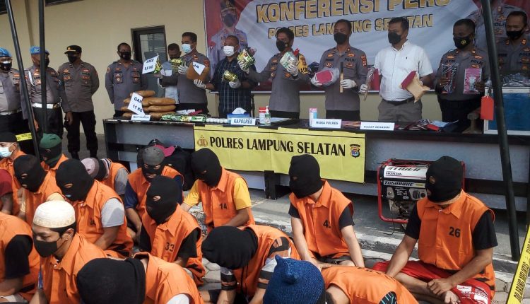 Lampung Selatan (MIN) – Polres Lampung Selatan Gelar Konferensi Pers di Mako Polres setempat, mengumumkan penangkapan 25 tersangka, hasil dari penangkapan pada bulan September 2021. Ke 25 tersangka tersebut terjaring Tindak Pidana C3 (Curat, Curas, Curanmor) sisanya adalah sindikat narkoba bersekala besar, Kamis (07/10).