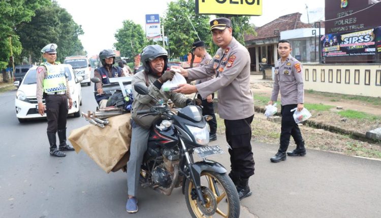 Berhentikan Pengguna Jalan, Polres Lampung Timur Bagi Ta’jil Gratis