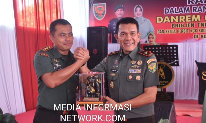 Lampung – Komandan Korem 043/Gatam Brigjen TNI Rikas Hidayatullah, S.E., M.M., didampingi Ketua Persit Kartika Chandra Kirana Koorcab Rem 043 PD II/Swj Ny. Hanny Rikas Hidayatullah, beserta rombongan melaksanakan kunjungan kerja di Kodim 0429/Lamtim, yang berada di Jl. Soekarno Hatta Desa Mataram Marga Kecamatan Sukadana Kabupaten Lampung Timur. Selasa (23/07/2024).